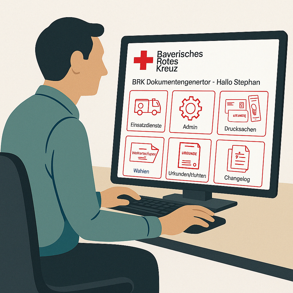 Um den Richtlinien und Vorgaben des Styleguides zu folgen, und hierbei mit möglichst wenig Aufwand spezifische Inhalte erstellen zu können, haben wir diesen Dokumente-Generator erstellt. Mit ihm können berechtigte Leitungskräfte styleguidekonforme Visitenkarten, Werbemittel wie Rollups oder Bauzaunbanner und verschiedene Lehrgangszertifikate erstellen. Eine Authentifizierung per BRK-ID ist zur Verwendung notwendig.